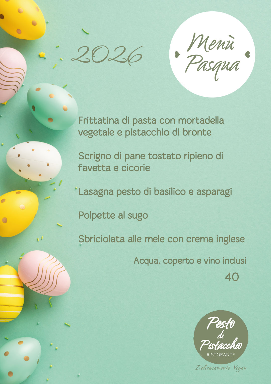 23 Mar Menu di Pasqua 2026 Posted at 13:30h in News ed Eventi by admin 0 Likes Festeggia in modo speciale Pasqua 2026